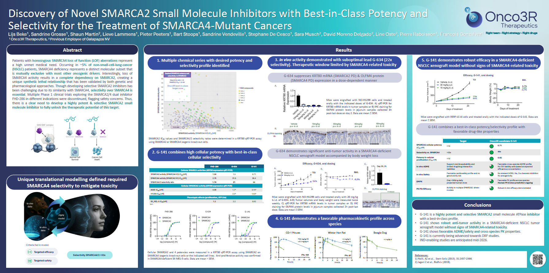 We present three scientific posters showcasing the depth and innovation of our oncology pipeline, including our lead programs in FGFR3, SMARCA2, and p53. These presentations highlight our progress toward clinical candidate nomination and our commitment to developing best-in-class therapies with transformational potential.