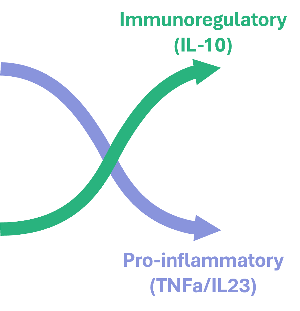 O3R-5671 targets the SIK3 enzyme which in turn impacts other proteins resulting in reduced transcription of genes involved in inflammation including tumor-necrosis factor alpha (TNFa) and interleukin 23 (IL-23) and increased transcription of immunoregulatory genes such as IL-10. Numerous studies have been conducted in translational models of autoimmune diseases which indicate that O3R-5671 is able reduce the severity of these diseases. We have also conducted extensive toxicology studies and are now ready to investigate O3R-5671 in humans.