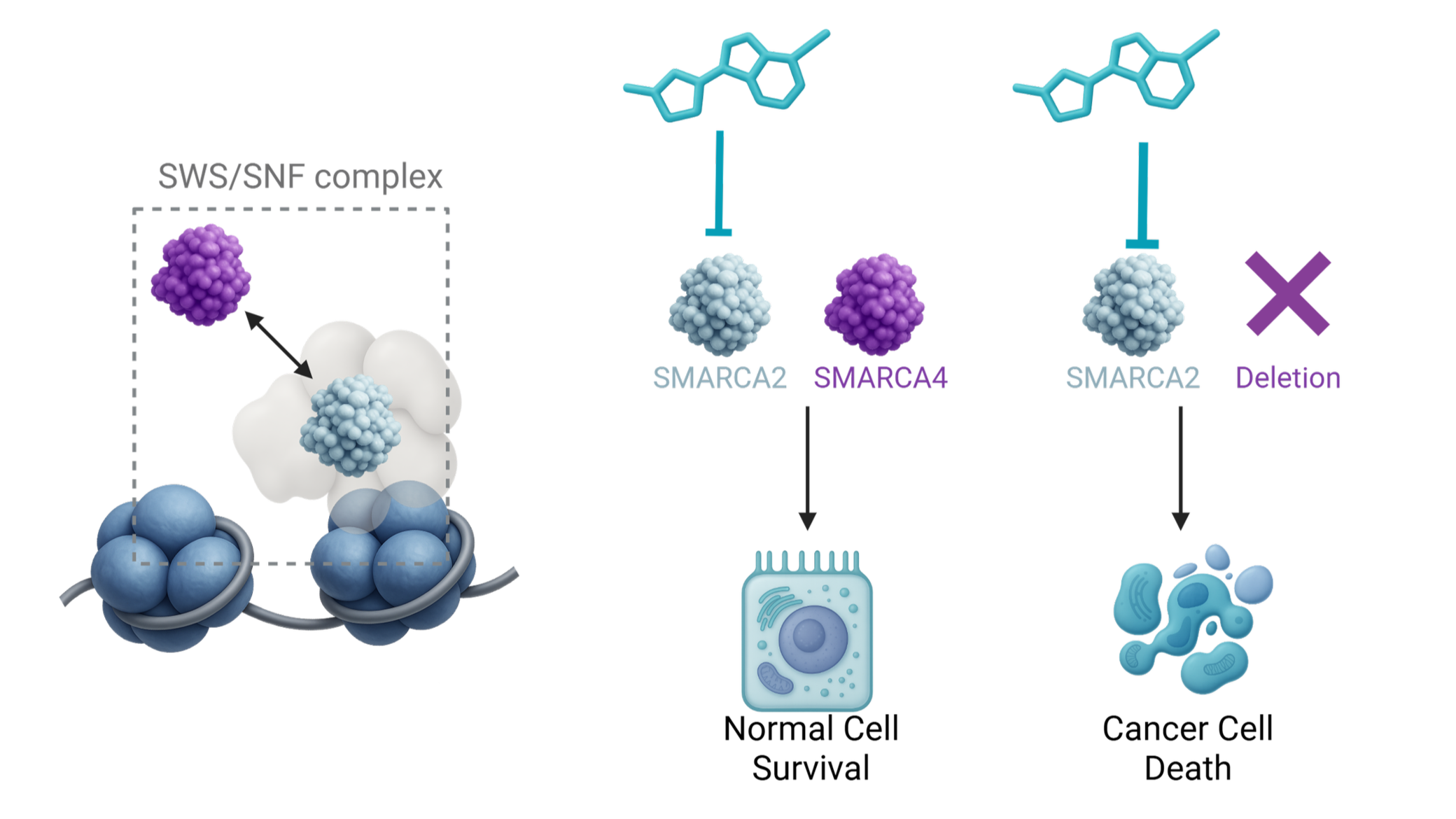 Loss of SMARCA4 occurs in ~5% of NSCLC cases, defining a distinct patient population with poor prognosis and a 5-year survival rate below 10%. While SMARCA2 inhibition has long been established to induce synthetic lethality in SMARCA4-deficient cells, translation into the clinic has been hampered by lack of selectivity against SMARCA4.