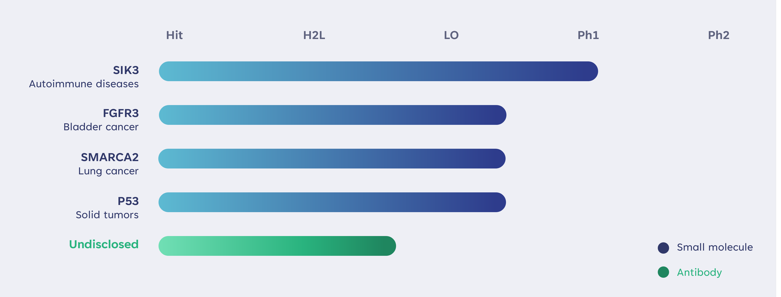 At Onco3R, we take a modality-agnostic strategy to unlock the full therapeutic potential of clinically validated targets. Our pipeline includes both small molecules and antibody-based therapies, each tailored to address the complex disease biology in oncology and immunology